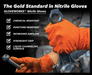 Gloveworks HD Orange Textured Nitrile Industrial Gloves are strong and durable, constructed from 8-mil nitrile. Superior puncture and chemical resistance against grease, pesticides, gasoline, and cleaning solutions. Measuring 9.5 inches from fingertip to cuff, they also feature raised diamond texture, with 60 percent more surface area than standard nitrile gloves. The diamonds channel away liquids for first-rate gripping power in wet conditions. They are touchscreen compatible and feature excellent dexterity, durability, and a comfortable fit and feel rivaling that of natural rubber latex. Food-safe and perfect for use around the home as well as workplace applications from automotive to manufacturing, janitorial to plumbing, paint shop to foodservice. High-visibility orange color is an added safety feature in dark environments. Latex-free and powder-free. Buy one size larger than you normally would.